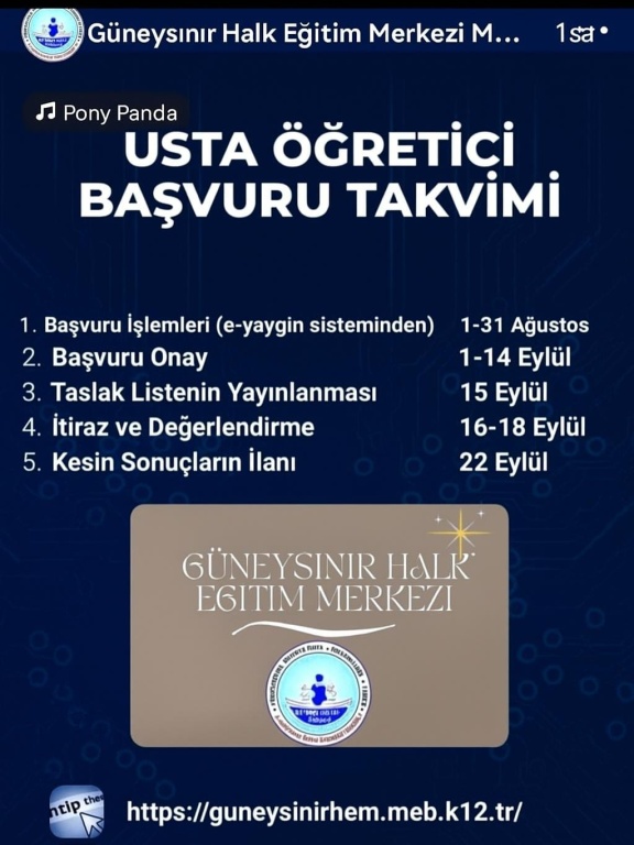 2025/2026 Eğitim Öğretim Yılında Halk Eğitimi Merkezi bünyesinde kurs açmak isteyen öğretmen ve usta öğreticilerin başvuruları başladı.